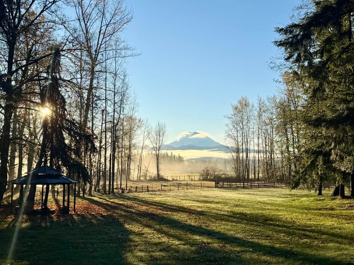 Nestled just outside the charming town of Enumclaw, Washington, this picturesque country home invites you to embrace a tranquil escape amidst the breathtaking vistas of majestic Mt. Rainier. Positioned to seamlessly blend the serenity of rural living with the convenience of urban accessibility, the farm offers a perfect balance for both outdoor enthusiasts and city dwellers. Boasting a generous 3,500 square feet, the residence provides ample room for memorable gatherings with loved ones, enveloping guests in warmth and comfort against the backdrop of scenic rural splendor. With its proximity to Seattle, Mt. Rainier National Park, and Crystal Mountain—all within an hour's drive—this idyllic retreat promises boundless opportunities for exploration and rejuvenation throughout the seasons. (A disabled military veteran owns the farm.)